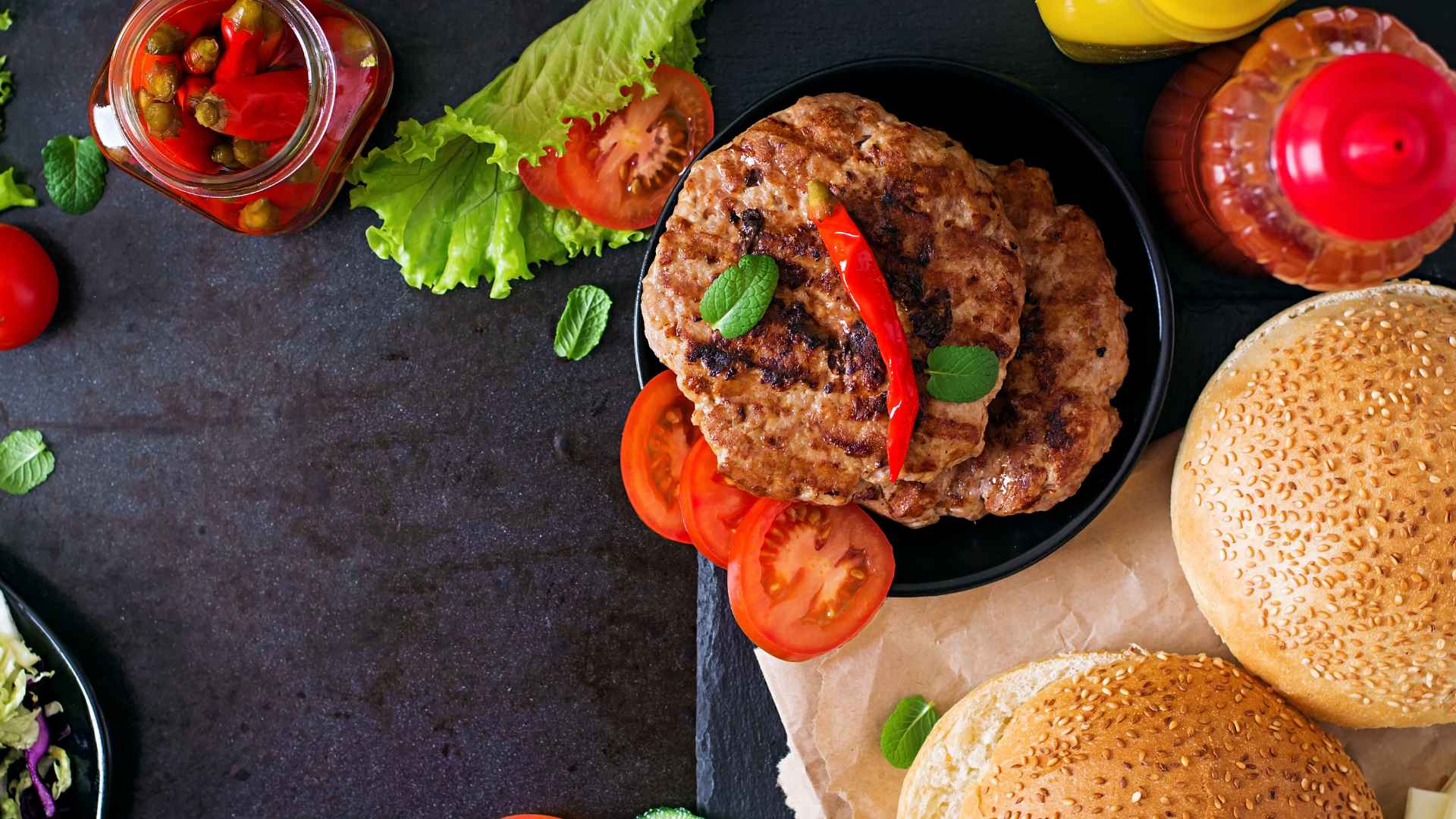 - Burger buns and toppings (lettuce, tomato, onion, etc.)