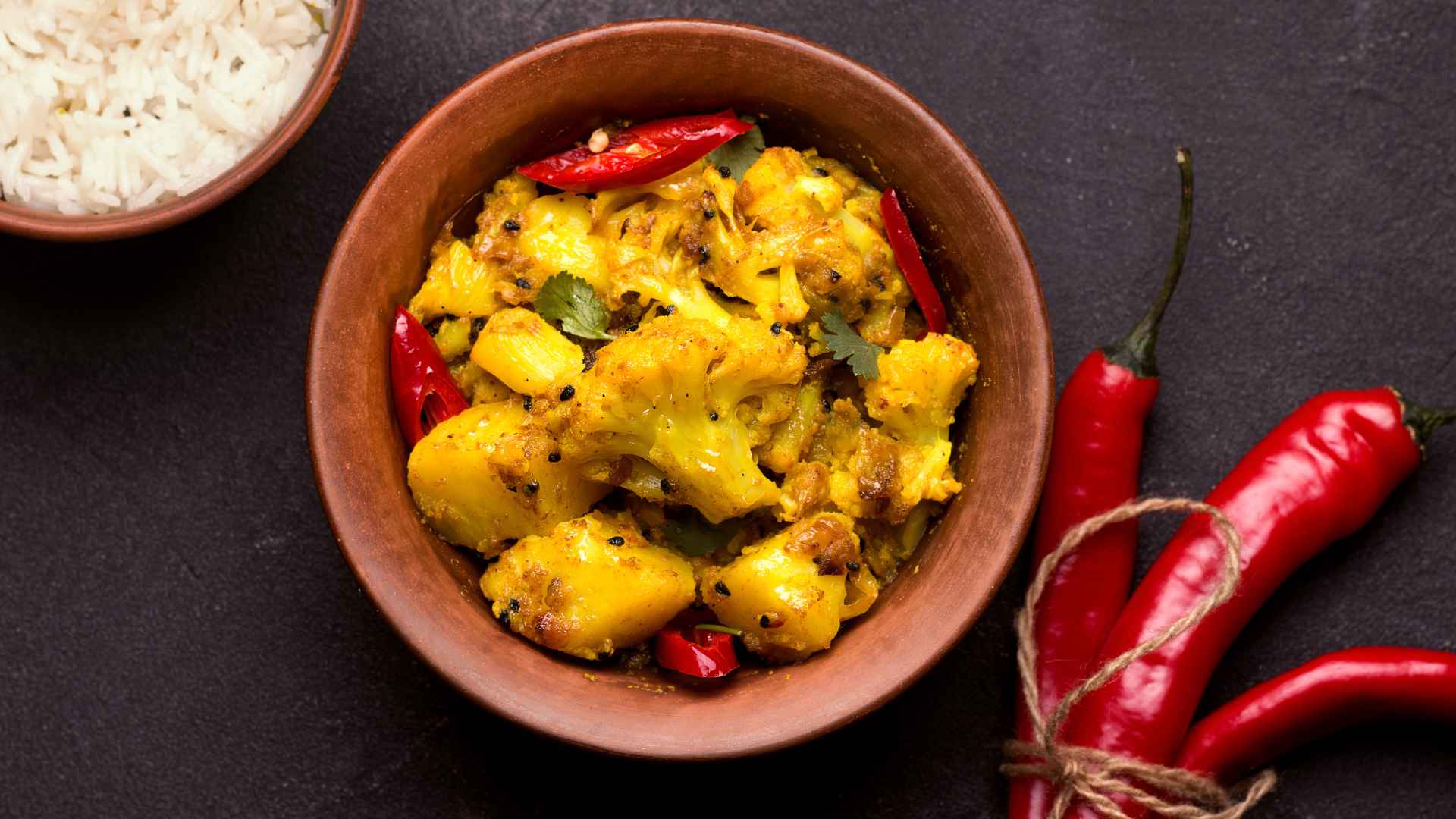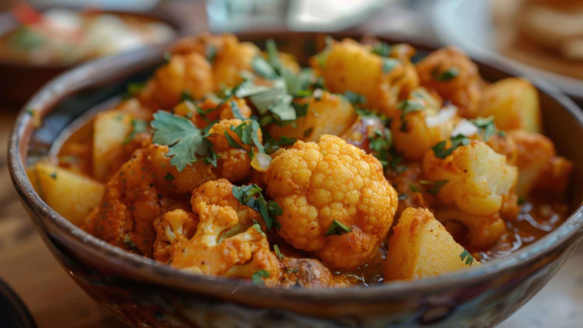 A delicious vegetarian dish made with potatoes and cauliflower, infused with the vibrant flavors of Indian spices.
